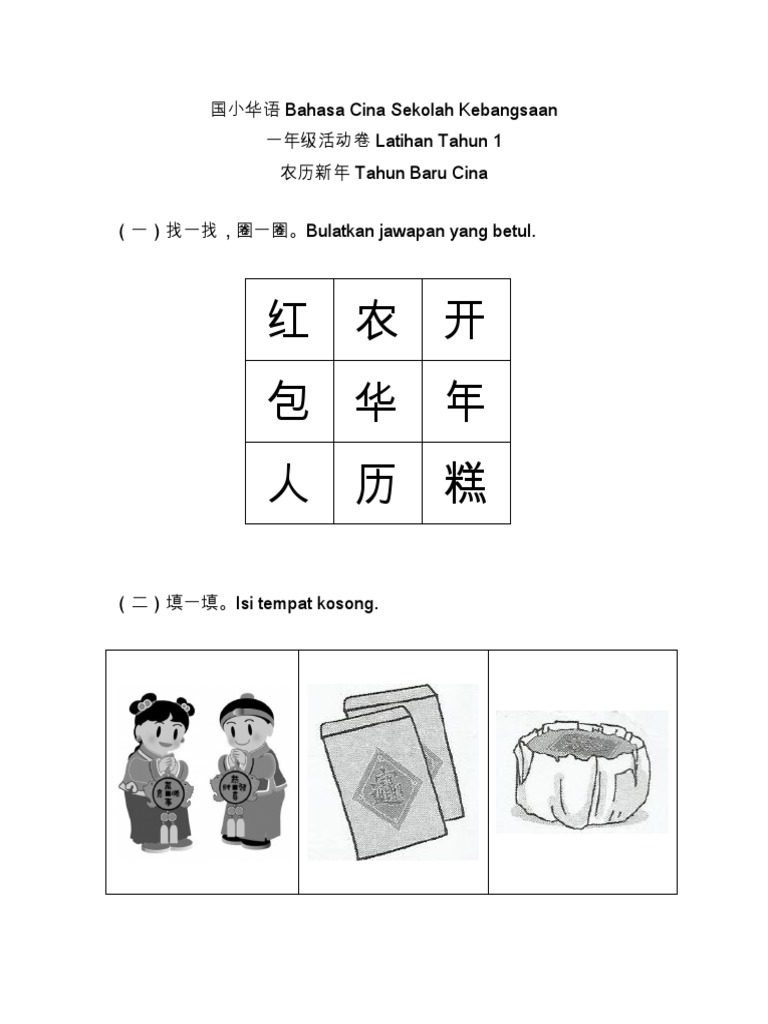 Lembaran Kerja Bahasa Cina Tahun 1 Pdf
